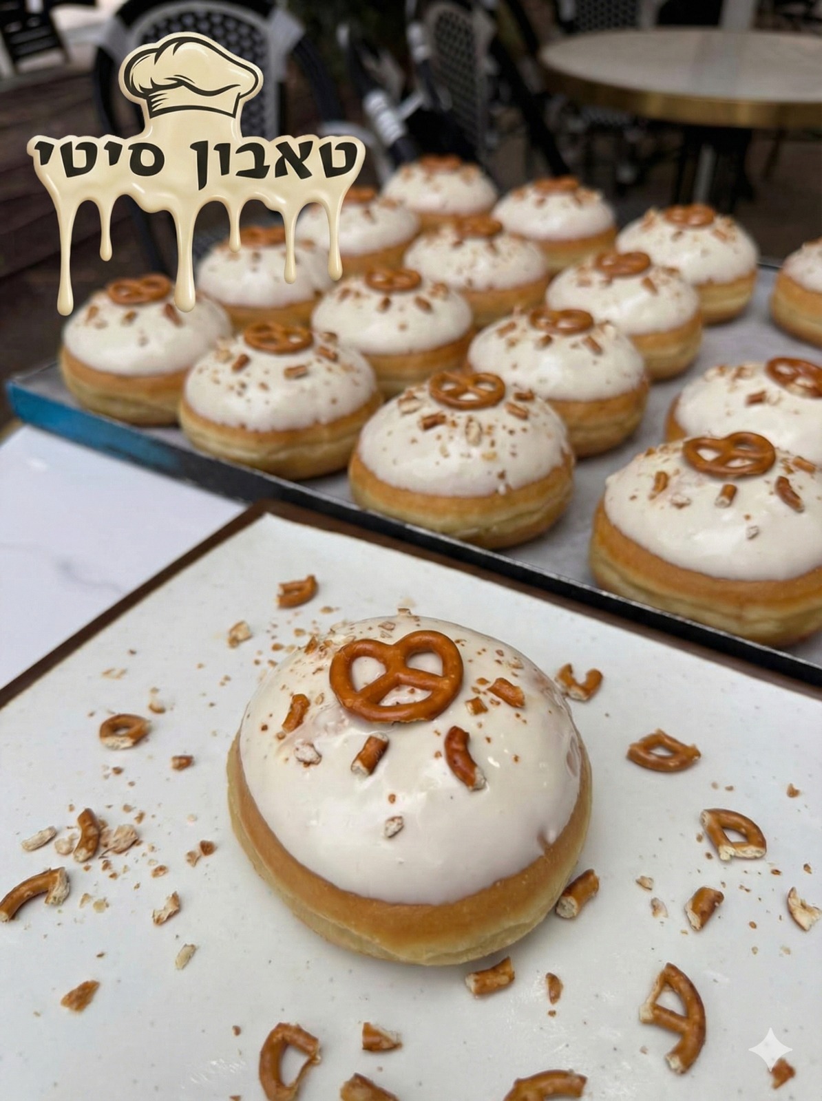 הסופגנייה שמגדירה מחדש מה היא מתיקות מאוזנת. קרם וניל, ציפוי וניל, ובייגלה מעל. שילוב מושלם של מלוח–מתוק.