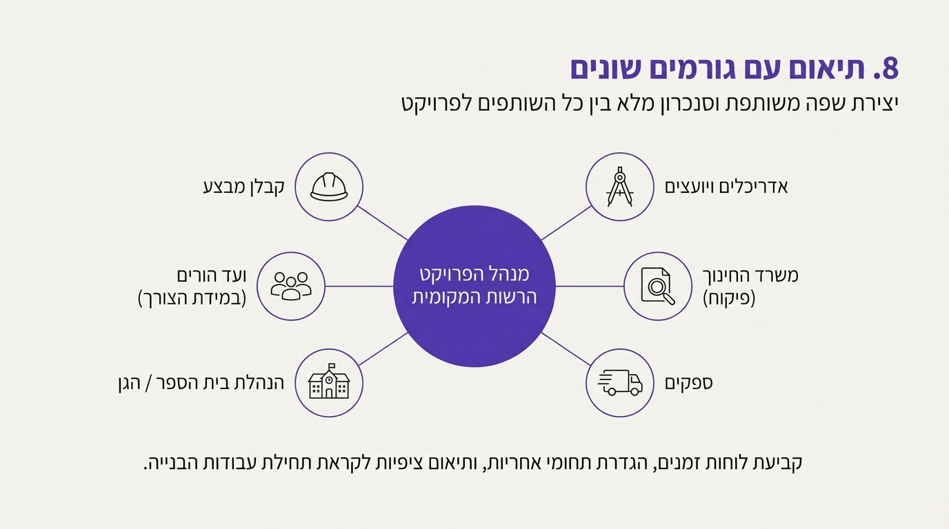 במיוחד כשמדובר בפרויקטים מורכבים שדורשים תיאום בין גורמים רבים, מעקב צמוד, פתרון בעיות בשטח וקידום מתמיד מול משרדי ממשלה – התפקיד של ראש עיר הוא קריטי להצלחה.